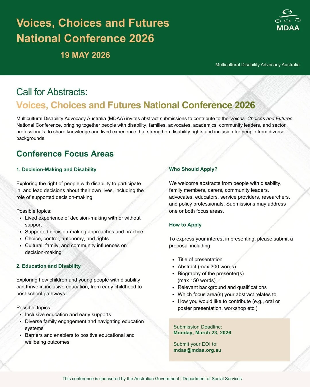 The competition is organised by Multicultural Disability Advocacy Australia (MDAA).Competition Period